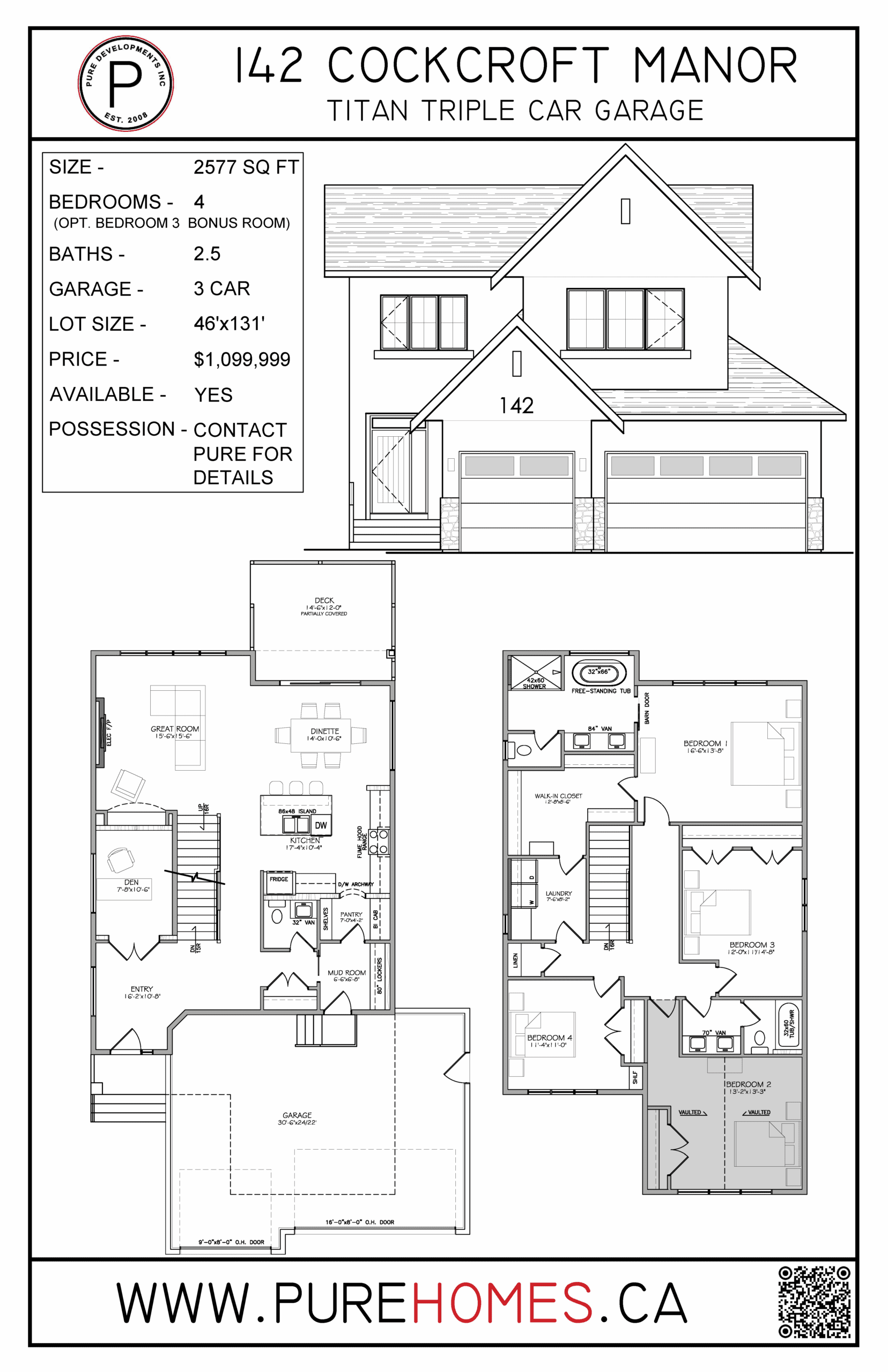 Proposed build.... looking for an amazing 4 bedroom park backing family home? or convert the 4th bedroom to a bonus room. This plan is being offered as a proposed build on one of the last remaining triple car garage sized lots on Cockcroft Manor an amazing location in the heart of Brighton. This offer provides endless opportunities using your design inspirations or ours! Pure is eager to make your vision come to life!